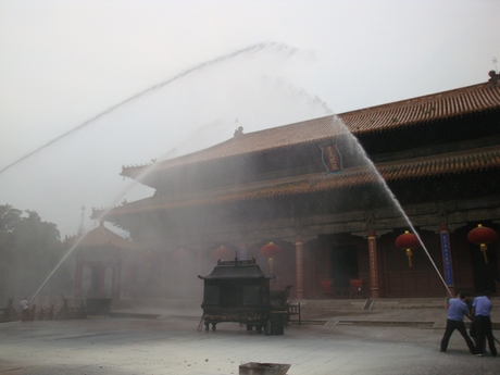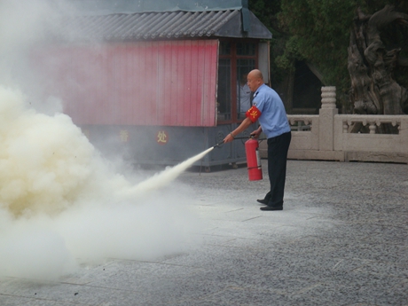 6月21日,随着安全生产月活动的推进,博物馆联合泰山景区安办在岱庙天贶殿组织了一场消防实战演习,这次演习以博物馆保卫科专职消防员为主力,全家福公司、展室看管员、保洁员和博物馆办公室部分职工参与了演习。