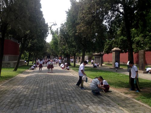 近日,按照景区团工委部署,结合泰山景区创建全国文明城市暨国家卫生城市复审的活动安排,博物馆与驻地周边学校开展共建活动,组织泰安市实验小学的学生到岱庙进行义务劳动,对岱庙西侧主干道的砖缝杂草进行清理。