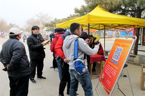 在岱庙北门,开展了扫描二维码加关注,免费送小礼品活动。