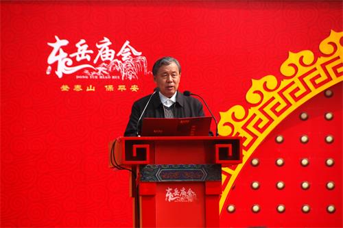 刘德龙在致辞中说,泰山东岳庙会历史悠久,内容丰富,是我国最具有影响力的庙会。泰安市委、市政府对保护这一珍贵的非物质文化遗产高度重视,泰山管理部门对庙会的传承与发展采取了许多切实可行的措施。庙会是广大民众精神生活和物质生活的重要空间,保护非物质文化遗产就是要保护活态的文化空间。近年来,泰山庙会在继承传统的同时,还结合时代特点,逐年融入新的内容,使庙会活动更加多姿多彩。将台湾民俗文化引入泰山庙会,已经成为当今泰山庙会的一个亮点。中韩民俗文化的交流,也成为泰山庙会中的保留项目。在今年的庙会上,我们还可以欣赏到泰山地区极其丰富的非物质文化遗产,切身感受到中华优秀传统文化的博大精深,这使泰山东岳庙会具有了更加广泛的代表性。
