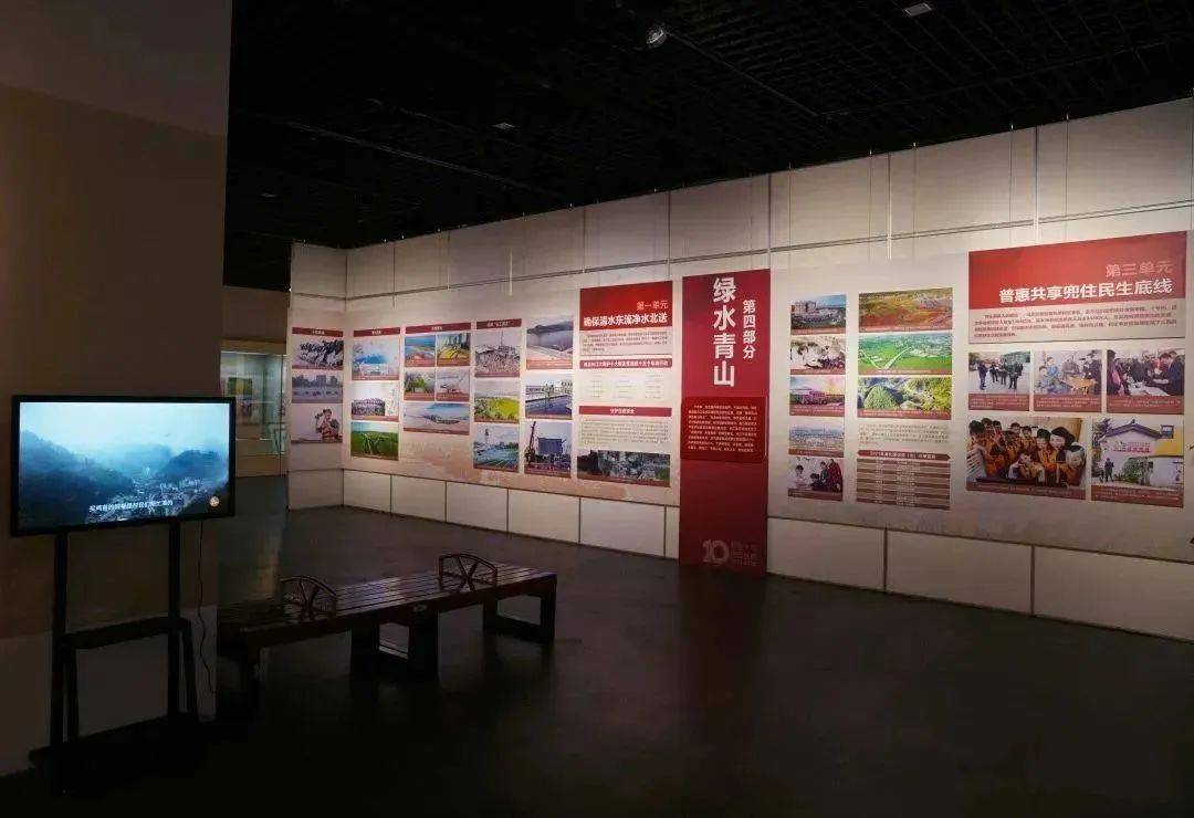 展示了十年来,湖北坚持共抓大保护、不搞大开发,始终把修复长江生态环境摆在压倒性位置,坚持“绿水青山就是金山银山”,坚决走生态优先、绿色发展之路,打好污染防治攻坚战,减污降碳协同增效,着力推动高水平保护和高质量发展互促共进,长江生态环境发生了“河畅水清、岸绿景美”的明显变化。长江干流湖北段水质保持在Ⅱ类,河湖断面水质优良比例达到93.7%,空气质量优良天数比例达到86.7%,森林覆盖率达到42%。今天的湖北,天更蓝、地更绿、水更清,展现了“千湖之省、鱼米之乡”的生态美景。