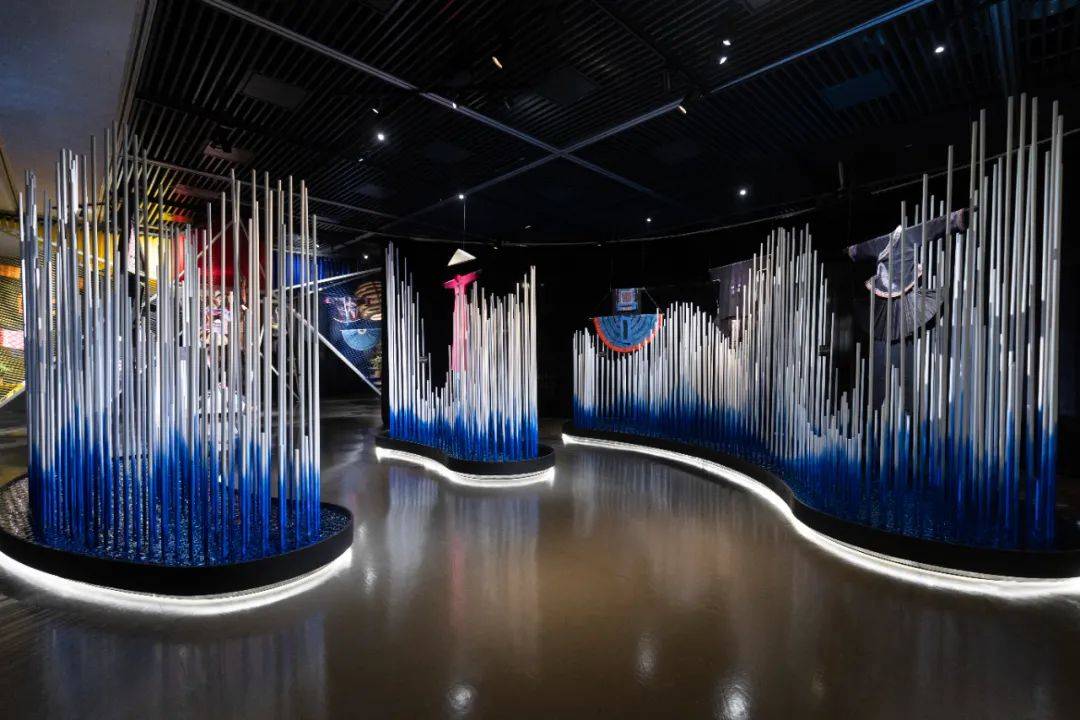 纺织的经纬工序,表达文化创造的根源。以线构成纺织意象空间、线轴作为创作根源,表达纺织机为编织的起源,犹如宇宙万物空间之中,探索从自然到“人文化成”的演变。