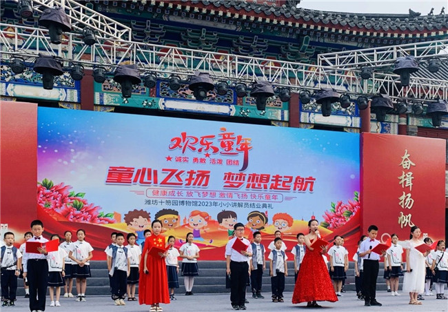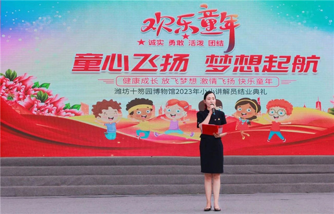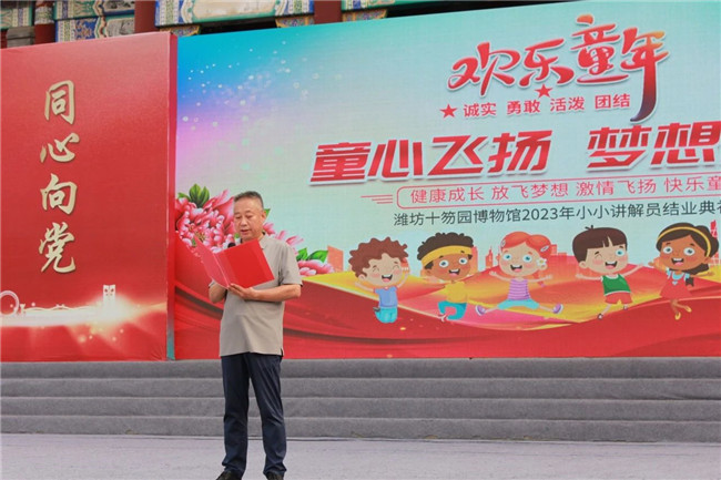 潍坊市博物馆专职副书记王国栋为2022年小小讲解员颁发明星小小讲解员证书
