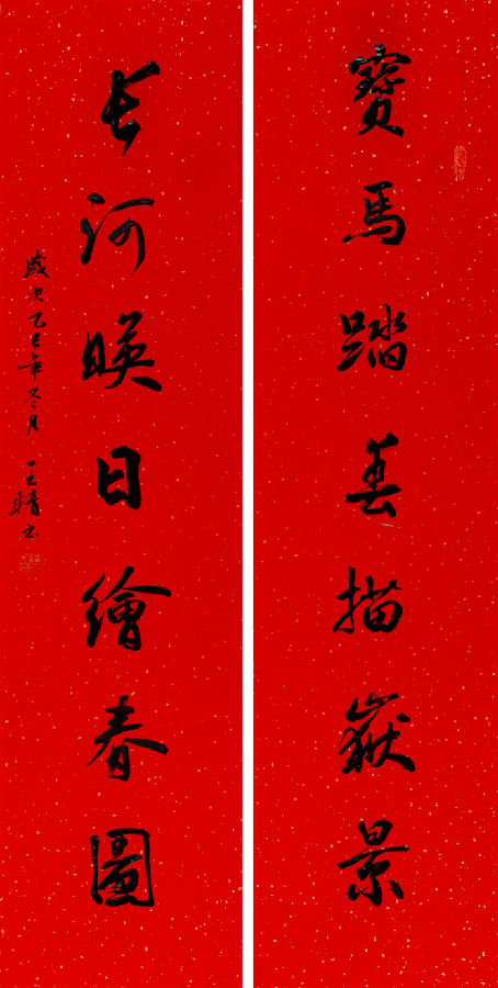 王精(宝马踏春描嶽景 长河映日绘春图)