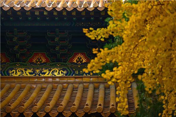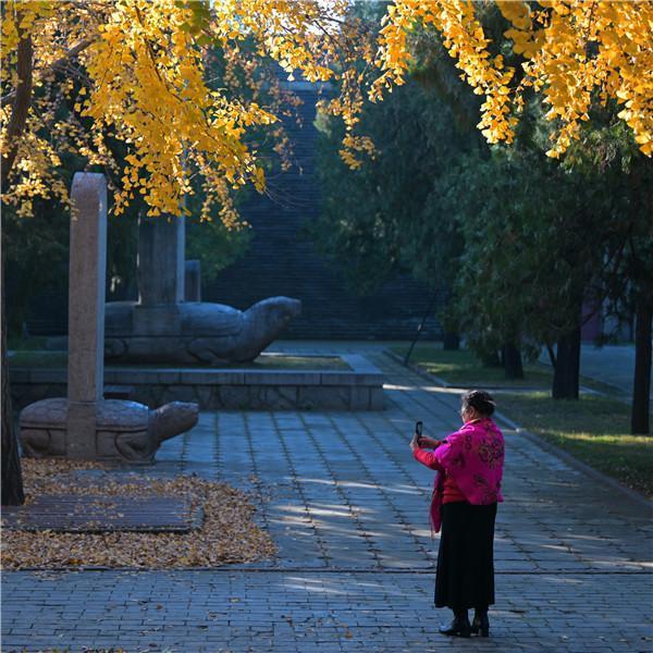 初冬游岱庙,嗅到的是绚烂的不输深秋的味道,色彩斑斓在这里体现得淋漓尽致。初冬的寒气使得树的颜色又加深不少,在慵懒阳光里缓缓舒展身姿。泛红的树叶与银杏叶交织,与古建筑相融,在暖阳下演奏出一曲别有韵味的交响乐。