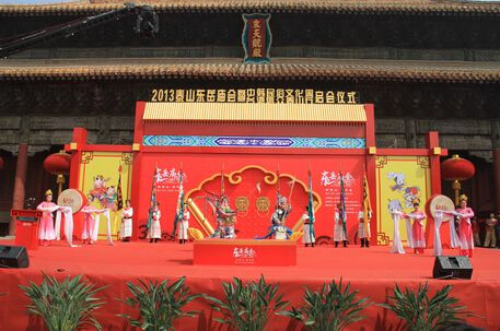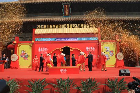 4月24日上午,2013年泰山东岳庙会暨中韩民俗文化周、台湾信众泰山行启会仪式在岱庙天贶殿大露台隆重举行,市委常委、副市长刘卫东,市人大常委会副主任孙运飞,市政协副主席、市总工会主席张书盈,泰山景区党工委书记谭业刚,泰山景区管委会主任李际山,市政府副秘书长张耀,市政府台湾事务办公室主任刘卫东及市直有关部门单位负责同志、景区领导班子成员出席启会仪式,中国民俗学会会长、中国社会科学院民族文学研究所所长、联合国教科文组织非物质文化遗产专家朝戈金,中国民俗学会副会长兼秘书长、中国社会科学院世界宗教研究所研究员、博士生导师叶涛,韩国东海市三和寺信徒协会会长金莹钦,韩国东海市东方大学院大学校教授洪闰植,韩国东海市政府市长代表郑然在,韩国东海市韩中大学校传统文化学部长教授金京南,台湾善化东岳殿主委尤耿村,台湾高雄龙后宫宫主张顺后,北京民俗博物馆副馆长关昕,青岛高丽旅游度假有限公司总经理李红哲,山东省道教协会副会长、泰山碧霞祠主持张诚达等嘉宾、专家出席启会仪式相关活动。
