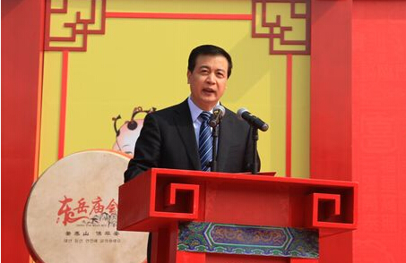 谭业刚在致辞中指出:泰山东岳庙会是泰山最具生命力的民俗文化景观之一,也是名山大川与俗信活动融合发展的瑰丽景象,被列入国家级非物质文化遗产名录。东岳庙会从独具魅力的民间曲艺,到异彩纷呈的游艺竞技,从祈福迎祥的拜山仪式,到泰山封禅的仿古演出,全方位展示了泰山几千年的文化积淀。近年来,泰山景区按照打响“登泰山 保平安”这一品牌,做大三个产品、形成三大产业的发展思路,不断加强泰山东岳庙会的保护、传承与利用,并以挖掘、弘扬、展示、传承泰山文化为核心,创新举办形式,提升活动品位,拓展合作领域,努力把泰山办成海峡两岸及国际具有特殊影响力的祈福圣地,取得了显著的社会和经济效益。本届庙会紧紧围绕泰安市委、市政府“推进富民强市、建设幸福泰安”战略部署和发挥泰山在旅游业中龙头带动作用的要求,在挖掘提升传统优势项目的基础上,更加突出“平安、和谐、纳福”主旋律,推出了“中韩民俗文化周”交流活动,将原汁原味的韩国“象帽舞”“扇子舞”表演、宫廷服饰展、传统纸艺展等韩国民间民俗、文化艺术、特色产品体验项目引入庙会,必将进一步推动中韩两国民间交流和文化互动;策划了海峡两岸民俗文化互动、中韩佛教文化交流等研讨、合作活动,积极推进文化与旅游、民俗与商贸的有机融合。我们期待通过本届庙会的创新拓展,能够为弘扬泰山平安文化、建设泰山国际知名遗产地和旅游目的地注入新的活力。