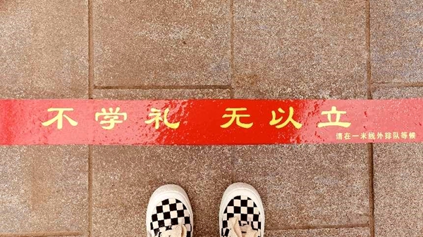 泰安市博物馆结合常态化疫情防控需要,创新开展“新时代美德山东”公益宣传,立足博物馆职能和岱庙景区特点,挖掘弘扬中华民族优秀传统文化,将孔子“不学礼,无以立”的谆谆教诲,印制在“保持一米间隔”的贴条上,于细微之处,倡导文明之举,衬托出博物馆浓郁的文化氛围。
