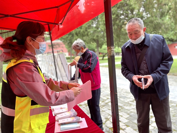 在厚载门内,工作人员设立宣传咨询服务台,专门设计制作了防养老诈骗宣传版面,向老年游客介绍常见的诈骗手段及应对措施。现场发放健康宣传、防诈骗明白纸、泰山景点等宣传册页,受到游客称赞。
