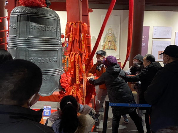 古钟作为传统文化的载体,在中国古代物质文化史中占有重要地位,撞钟祈福更是延续千年的传统项目。当游客们撞响钟楼内的古钟,淳厚绵长、圆润洪亮的钟声响起,寄托了他们对国泰民安、家庭幸福的美好祈愿和新春祝福。
