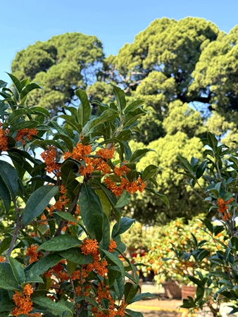 园内荟萃一百余盆珍贵桂花,以金桂和银桂为主。其中有的花龄已逾百年,愈老弥香。国庆期间,岱庙的桂花如约绽放,芳香弥漫整个园区。桂花芬芳四溢,姿态优雅,绿荫掩映中,金桂的金黄与银桂的洁白更加迷人,与古朴的岱庙交相辉映,勾勒出一幅美丽的秋季画卷。
