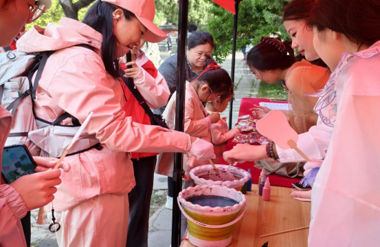 “清明韶光”漆扇制作 为游客免费提供漆扇、颜料与绘画工具。春日的繁花、古庙的飞檐、嫩绿的枝芽,皆可成为创作灵感,游客挥毫泼墨,在漆扇上勾勒春日图景,书写清明祈愿,一柄柄专属漆扇承载着春日心意,完成后便可带走这份独属于岱庙的春日纪念。