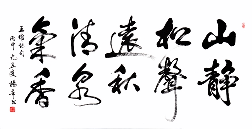 杨辛,北京大学教授,著名美学家,师从徐悲鸿、董希文先生。自1979年首登泰山以来,一直从事泰山美学研究,1986年创作《泰山颂》,2008年自书大幅《泰山颂》为人民大会堂收藏。近40年来,杨辛登临泰山45次,有钱绍武陪同的也有近10次,每次来到泰山,两位老先生在研究泰山自然风光之美,和泰山石刻之壮丽的同时,共同多次探访泰山挑山工、清洁工和护林工。