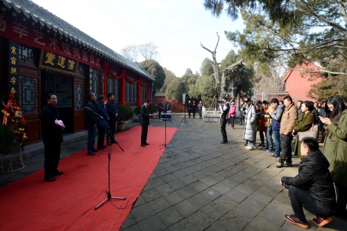 1月6日上午,杨辛艺术馆揭匾仪式在千年书院——岱庙信道堂举行。泰山景区党工委副书记、管委会主任姚霆,北京大学教授杨辛先生,泰山景区管委会副主任吕继祥,泰山景区管委会副主任刘慧及泰山景区的部分员工、媒体记者参加了仪式。