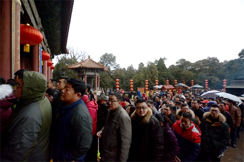 市民游客排队有序进入天贶殿参观
