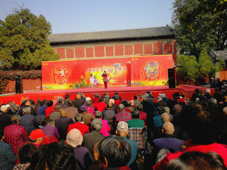 今年重阳节,博物馆开展了“关爱老人 庆祝十九大”主题活动。岱庙南北门悬挂敬老爱老的横幅,组摆菊花花坛,营造了赏菊闻桂、祈福顺安的浓厚氛围。精心挑选安排了京剧、豫剧、越剧、吕剧、现代戏及小品、舞蹈、时装秀等18项老年人喜闻乐见的传统戏剧表演。老人们兴致勃勃地欣赏了这些经典戏曲,不时报以热烈的掌声。