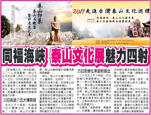 泰山文化内容丰富,博大精深,是中华民族共同的精神家园,在台湾有着广泛的影响。两岸文化信仰也是一脉相承,同根同源。据了解,现今泰山民间信仰在台湾已经成为重要的民间信仰之一,泰山东岳大帝、碧霞元君、泰山石敢当在台湾岛信奉者众多,台湾现存东岳宫、庙、殿30余处。每年到泰山、岱庙进香祭拜的台湾信众络绎不绝,大家一致认同泰山东岳庙为天下东岳庙之祖庭,这种民间信仰已成为泰台文化交流往来的一种重要形式。此次展览,正是两地联系密切的具体体现。