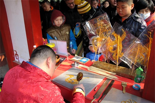春节期间,岱庙举办了主题为“平安吉祥新春游”暨“岱庙祈福迎春过大年”系列活动。主要包括“迎新春地方传统戏曲”演出、民间“社火”、“绕福石走福路 摸福树”、“新春祝福”语林、“狗年说狗”生肖文化展、“苍洱镌石----大理历代名碑拓片展”、谜语有奖竞猜、“民间非物质文化遗产及手工艺”展示、特色旅游工艺品展销等十余项活动。精心的布置、浓厚的节日氛围、丰富的文化大餐,让广大市民和游客在岱庙度过了一个浓厚、祥和、喜庆、欢乐的传统节日。