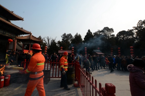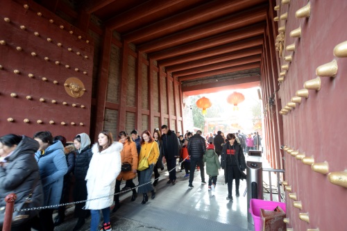 岱庙实行初一初二免费开放的惯例,为确保各项工作的顺利进行,岱庙景区工作人员全员上岗,坚守岗位。馆里提前筹划、精心部署,制定安全预案,并与公安、消防部门配合,明确分工。在人流高峰期间,增开东、西掖门及时进行疏导。在重要烧香点增派人手,增加护栏,全力以赴保障旅游秩序和游客的安全。虽然客流量比较大,但是秩序井然。通过全体员工的共同努力,为广大市民游客创造一个安全、文明、舒适、整洁的节日游览环境。据不完全统计,初一岱庙客流量达到14.6万人次,同比增加了45%。