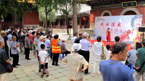 钟楼前,精彩的戏曲演出和古筝演奏,让游客和市民一饱耳福。