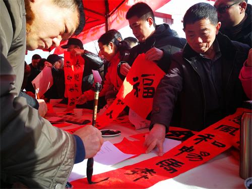 1月28日是中国北方传统节日“小年”,在这一天有书写春联的习俗。为此,泰安市博物馆与泰安市书法家协会在岱庙北门合作举办了迎春送福活动,岱庙春节系列活动正式拉开帷幕。