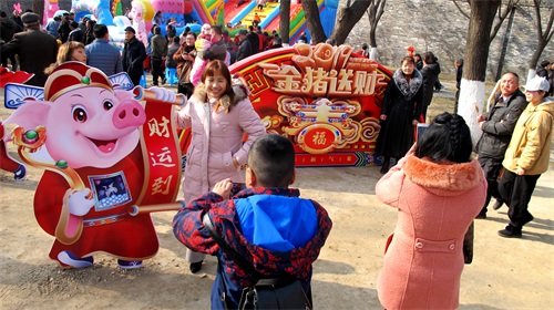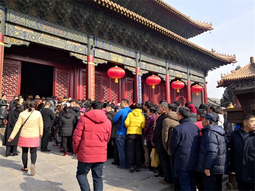 初二的岱庙,仍旧游人如织,虽然游客较昨日有所下降,但仍保持较高人流量。人们热情不减,欢声笑语不断,在岱庙尽情享受着浓浓的年味。