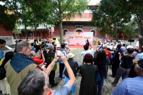 钟楼前,泰安当地艺术团体为游客市民献上了富有浓郁地方特色的戏曲及器乐演奏等文艺演出。具有中国特色的艺术韵味及精彩演出吸引了刚好参观的外宾团队的极大兴趣,纷纷掏出手机拍照录像,记录下岱庙行的难忘时刻。