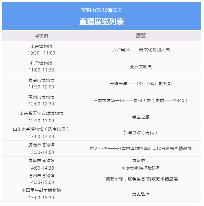 届时,广大社会群众、文博爱好者将以云游博物馆的形式迎来一场山东文化旅游的饕餮大餐,足不出户便可一览各馆精品展览,直播当中参与互动问答还可赢取文创礼品。