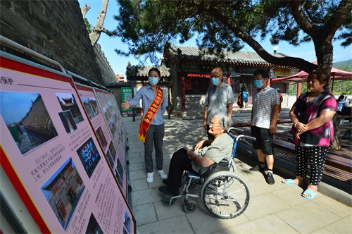 文化和自然遗产专题版面展区,工作人员和志愿者向游客介绍了近几年岱庙景区在文物保护、陈列展览、社教宣传、节庆活动等方面取得的成果。并现场解答游客咨询,发放宣传册页。