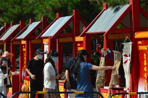 6月13日上午,宽阔的岱庙文化广场上,远远就看到城墙上悬挂的醒目红色条幅——“文化和自然遗产日传播文物价值 展现中华风采”。城墙下,仿古设计风格的红色摊位,与庄严肃穆的灰色古庙相得益彰。泰安市博物馆(岱庙景区)围绕今年的文化和自然遗产日活动主题”文物赋彩 全面小康”,在北门广场开展了内容丰富形式多样的宣传活动。