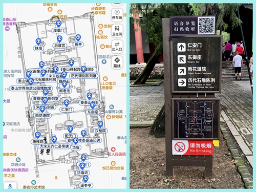 岱庙全域智慧语音导览系统是博物馆与烟台纬普文化创意有限公司共同合作推出的一款软件系统。其特点是以移动端为主体,通过景区电子地图与手绘地图相结合的方式实现全景浏览,系统根据游客需求进行规划和推荐专业的游览线路,并将景点特色介绍和文化内容用语音讲解的方式向游客进行生动介绍,实现了景点位置的导航、导游和导览功能,全面展示了岱庙全域旅游的主要景点,增强了游客的旅游体验感,提升了岱庙的旅游服务品质。