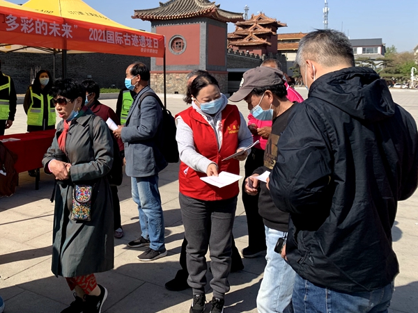 岱庙作为泰山世界文化与自然遗产的重要组成部分,承载着传承历史文化,促进公众保护历史文化遗产意识的重大使命。志愿者们通过向游客市民发放宣传册、介绍国际古迹遗址日内涵及解答游客咨询等方式,让公众认识国际古迹遗址日及世界遗产的多样性和不可再生性,提高公众保护人类文化遗产的理念和意识,推动遗产保护的代际传承,实现保护理念、精神、经验的代际共享。