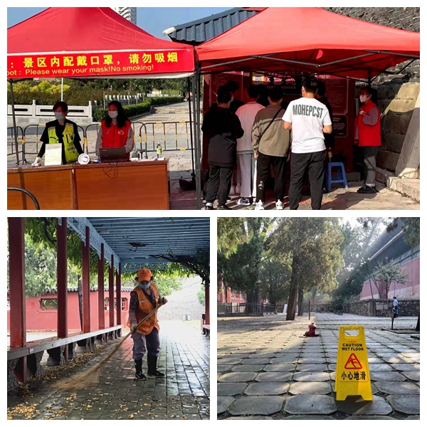 为全力做好中秋假期安全工作,博物馆提前部署,全员上岗,细化责任分工,严格执行佩戴口罩、实名登记、验码测温、安全检查等制度,针对雨天路滑等不便因素进行了全方位排查,在湿滑路段增设“小心地滑”等温馨提示、安全警示标志,确保了节日旅游安全。