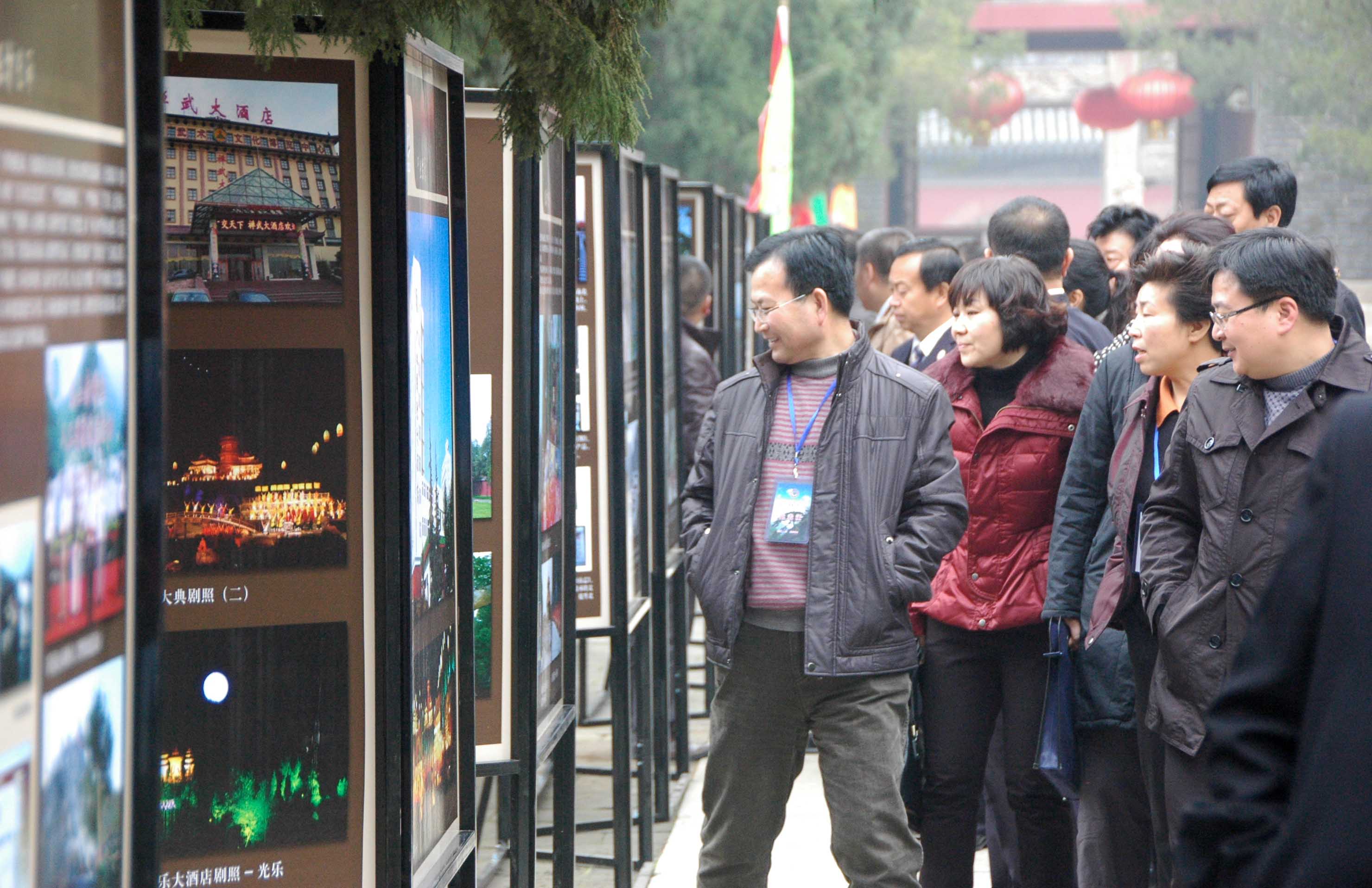 代表们参观五岳文化成果展,关注景区文化发展。