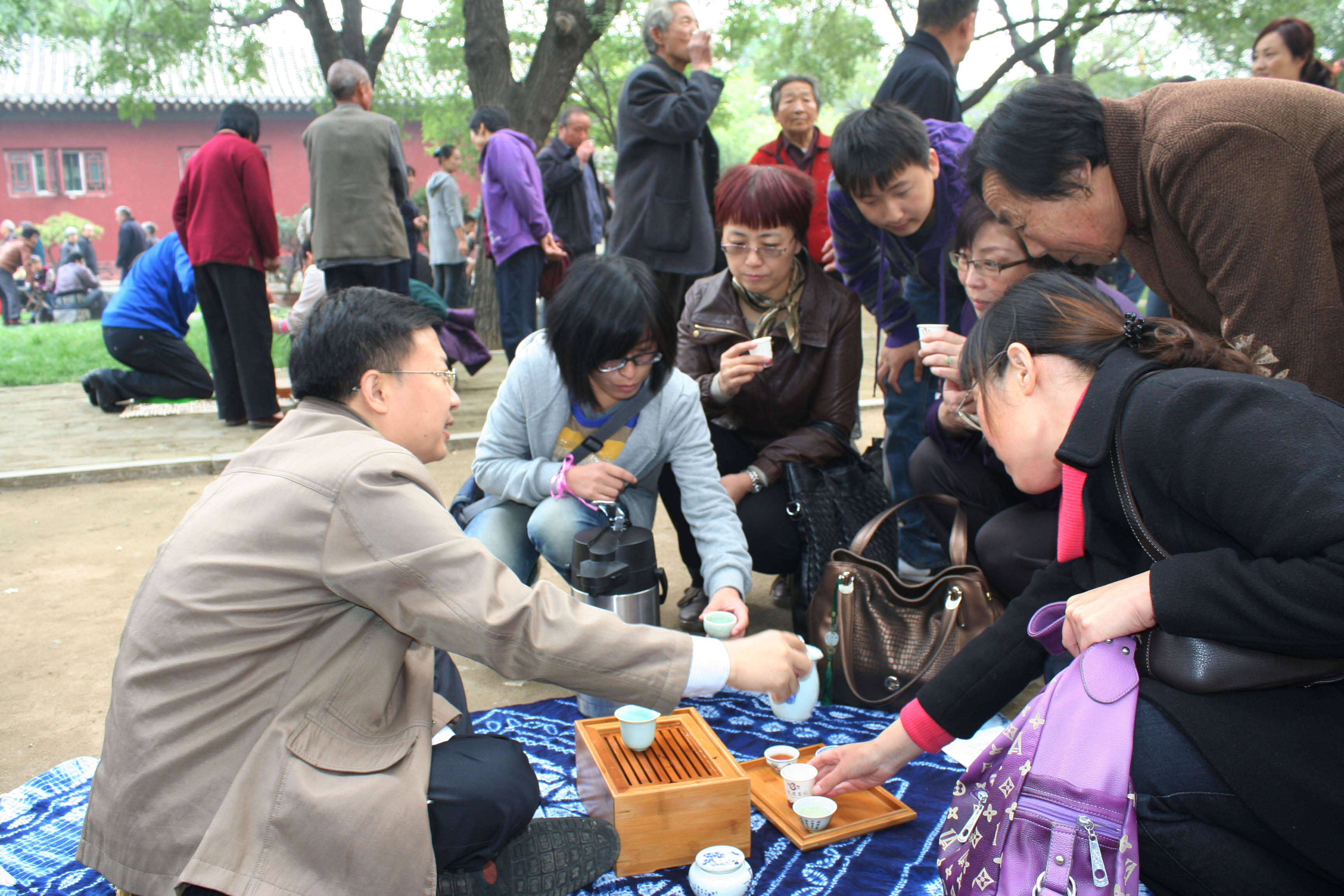 芳草如毡、绿树成荫的庭院内,百余名茶人席地而坐,相约“无我茶会”,切磋茶艺,共饮香茗,为热闹的九九老人节平添一份闲情逸致。