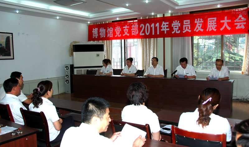 6月30日,博物馆举行了2011年党员发展大会。为了进一步表达党员对党的热爱和忠诚,博物馆党支部组织全体党员进行了庆祝建党90周年红歌会活动。通过系列活动的开展,不仅提高了党员对党的热爱之情,也提高了党支部的凝聚力。