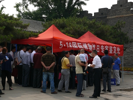 在岱庙北门广场举办的专家免费鉴宝活动仍然是博物馆日的“重头戏”。今年,特邀省文物鉴定专家赵玉俊、刘圣水为广大藏友免费鉴宝。上午九点,鉴宝专家准时赶到,立刻被藏友们团团围住,纷纷亮出家中“宝贝”期待专家点评。