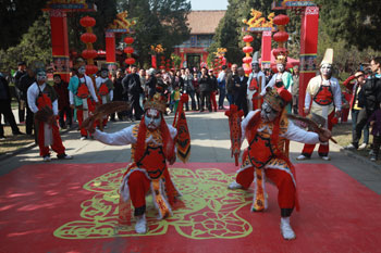 4月2日,随着东岳庙会暨海峡两岸民俗文化交流周的顺利启会,岱庙主会场的近20项活动也相继拉开帷幕。今年庙会可谓活动多多,精彩纷呈。除了近百年来庙会流传的传统娱乐游艺项目外,还开展了包括台湾优人神鼓表演、台湾八家将表演、台湾禅茶表演、台湾小吃一条街、非物质文化遗产展演、动漫文化展示等项特色各异的活动。