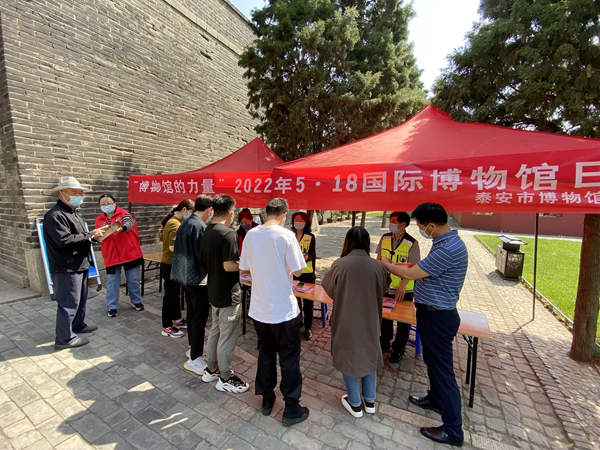 在岱庙北门,设立国际博物馆日主题宣传咨询台,免费发放文博宣传资料。
