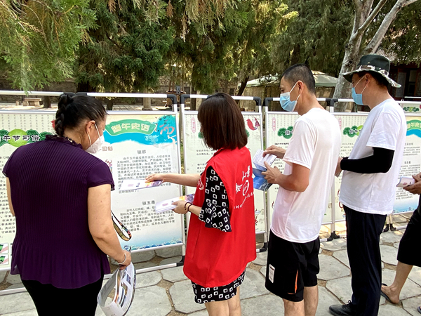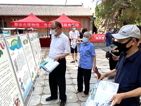 发放宣传册页,宣传泰山文化。