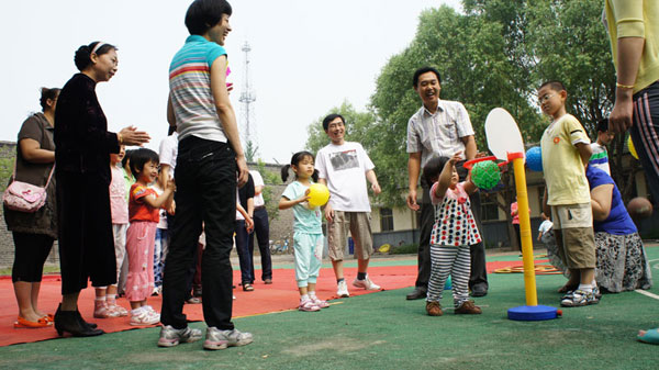 组织开展了儿童竞赛活动,分年龄组举行爬行、掷球、踩气球、投篮等趣味活动。