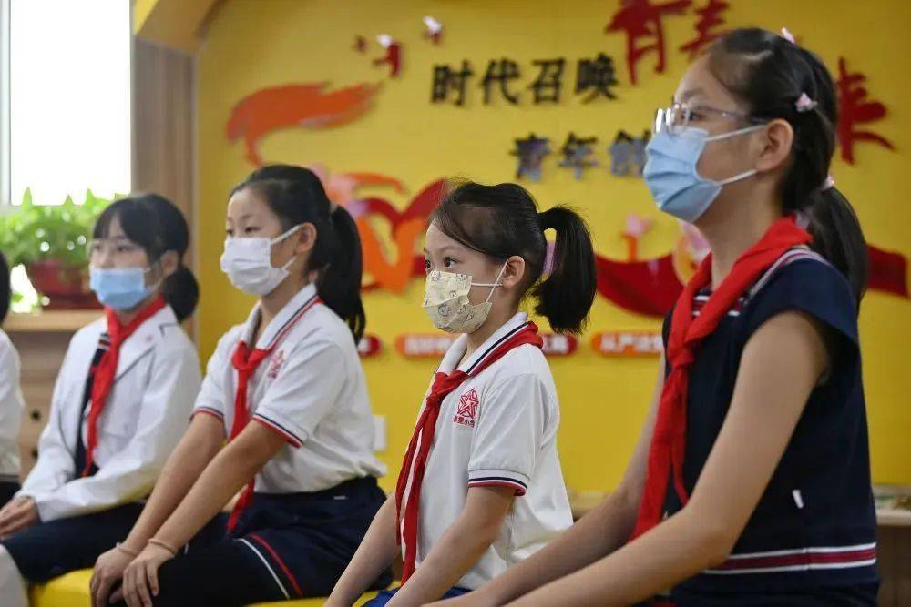 天津市和平区新星小学学生在观看电影《我和我的祖国》(2021年9月28日摄)。新华社记者 李然/摄