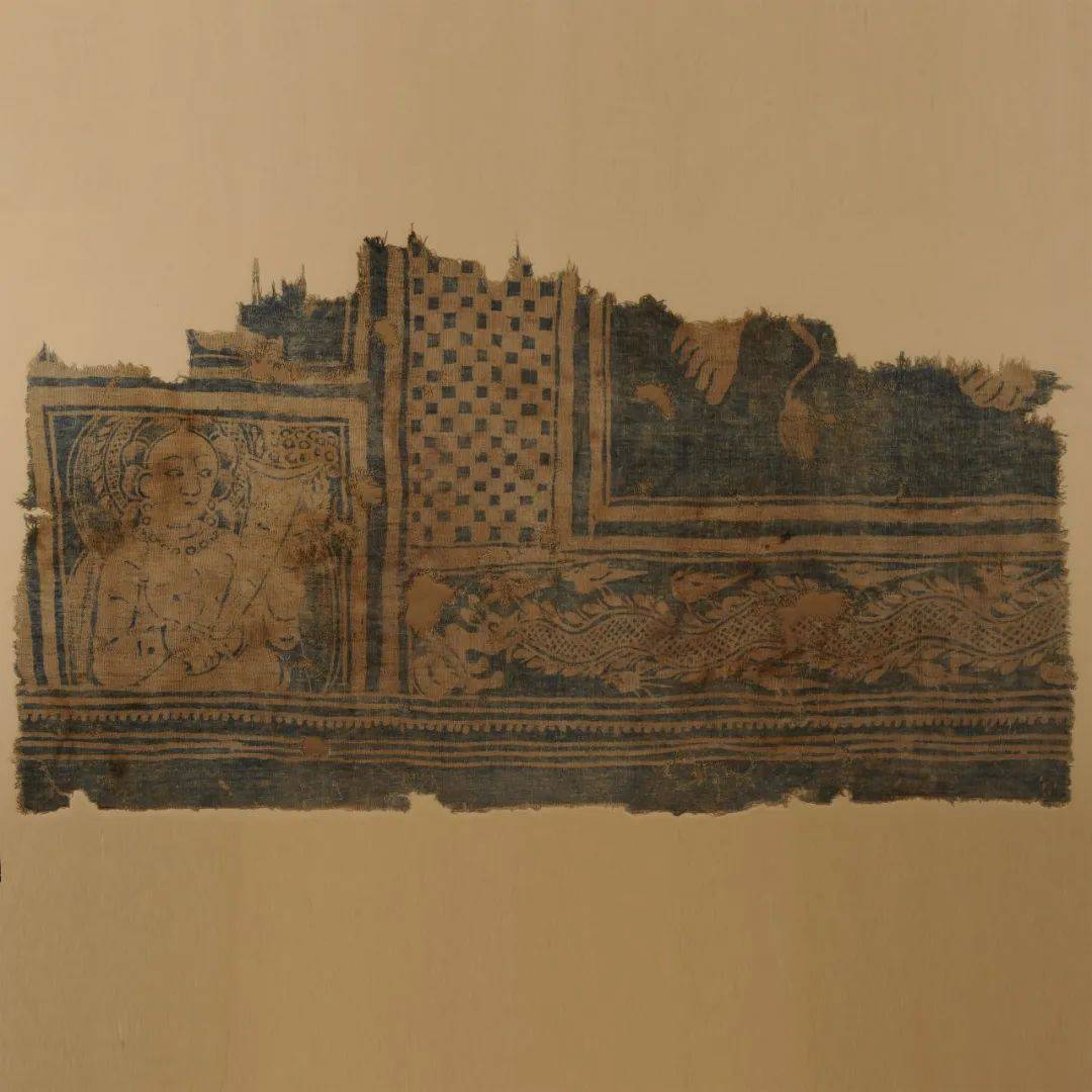 这件作品的纹饰属于希腊神话题材,而棉的纺织以及蜡染技术当是印度资源,大量几何装饰在犍陀罗艺术中十分常见,而女神造型上表现的“薄衣贴体”的形态则具有了贵霜帝国的马图拉艺术特点。因此这是一件汇集诸多地区文化元素和技术,是表现东西方文化交流中极为难得的艺术珍品。多方文化交流碰撞,成就了这块棉布独特而又精美的艺术风格,使之成为东西方文化交流的珍贵遗存和重要见证。