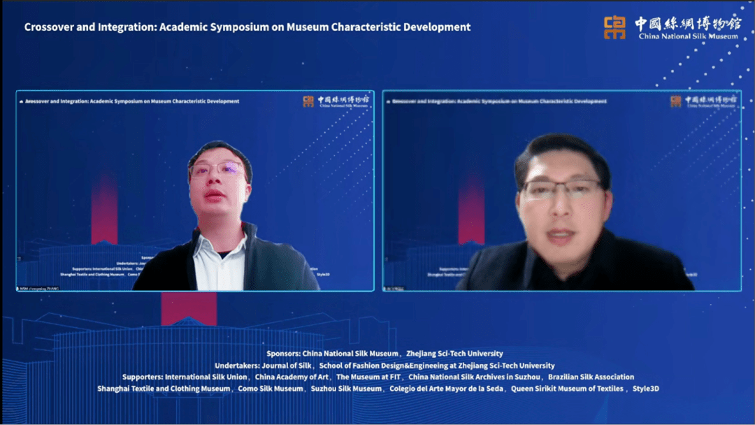 本次会议由中国丝绸博物馆与浙江理工大学联合主办,《丝绸》杂志社、浙江理工大学服装学院承办,并得到了国际丝绸联盟、中国美术学院、纽约时装学院博物馆、苏州中国丝绸档案馆、上海纺织服饰博物馆、巴西丝绸协会、意大利科莫丝绸博物馆、苏州丝绸博物馆、西班牙瓦伦西亚丝绸博物馆、泰国诗丽吉王后纺织博物馆、浙江凌迪数字科技有限公司等国内外知名博物馆和行业的支持。共有来自中国、美国、意大利、巴西、西班牙、泰国等国家的100余位学者和代表通过腾讯会议参会,其中12位专家学者在线上进行主题演讲,2万余人通过新浪微博和直播平台观看会议。