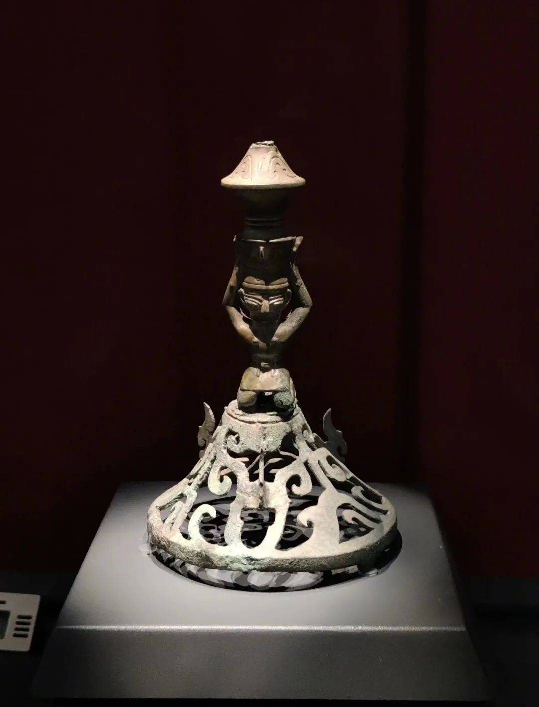 青铜喇叭座顶尊跪坐人像也系上了“安全带”(图据三星堆博物馆)
