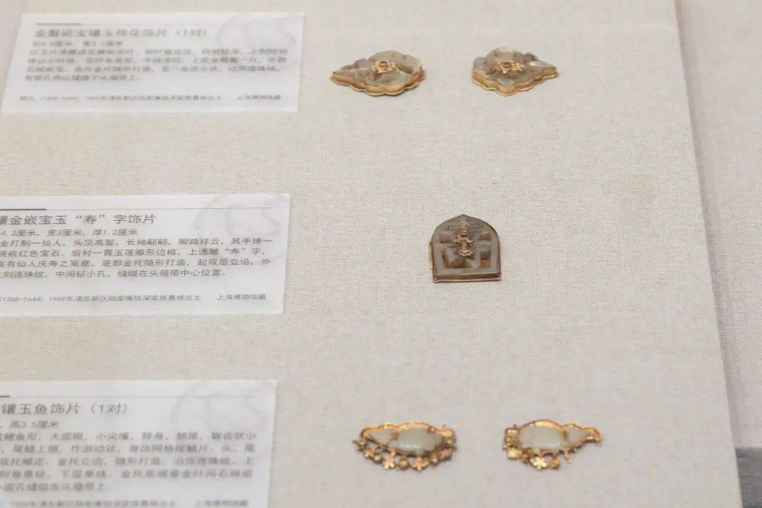 为庆祝浦东历史博物馆正式开馆,观众近期可在“浦江潮涌 东海风起——浦东历史文化展”中,欣赏到由上海博物馆、上海市历史博物馆(上海革命历史博物馆)借展的多件浦东地区出土的珍贵文物。其中包括1969年于陆家嘴陆深家族墓地出土的镶金嵌宝玉“寿”字饰片、金蟹嵌宝镶玉荷花饰片、金嵌宝镶玉鱼饰片、金镶玉蝶形饰片、嵌宝玉花首鎏金银簪、银丝发罩,1975年自原南汇县出土的龙凤纹荷叶盖青瓷罐等。