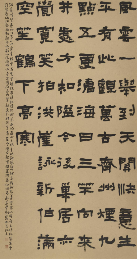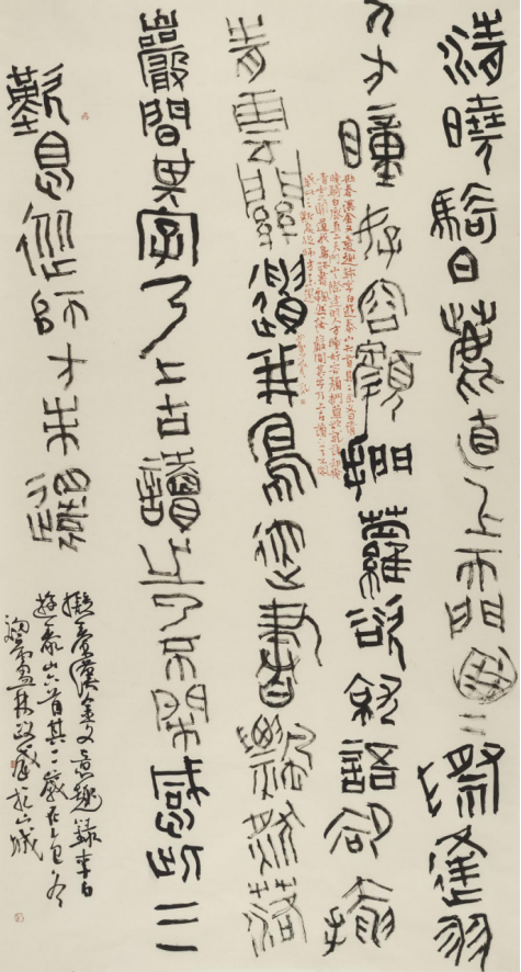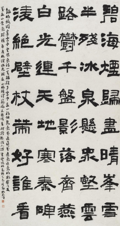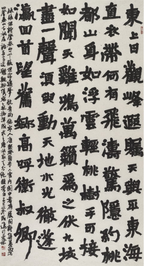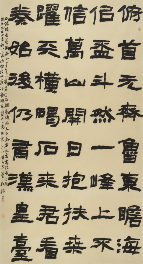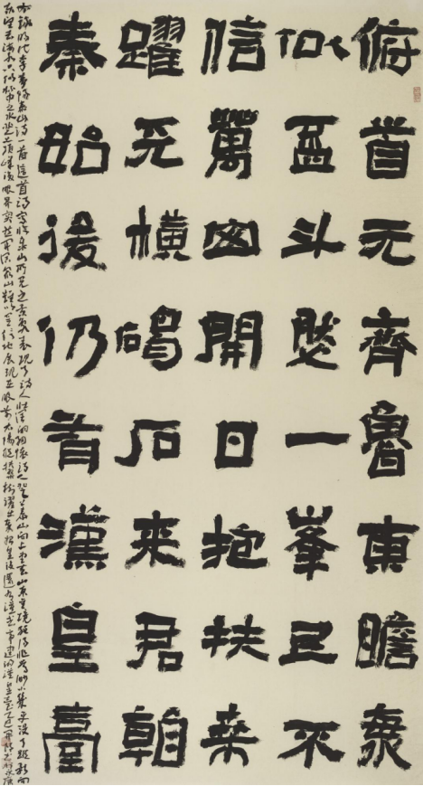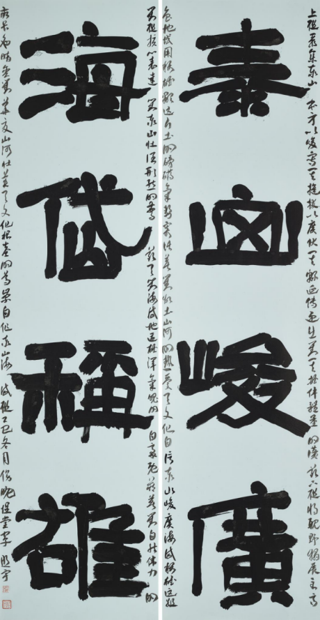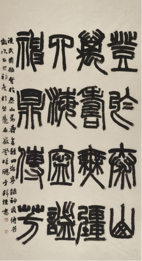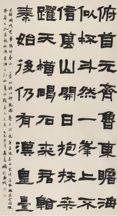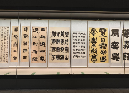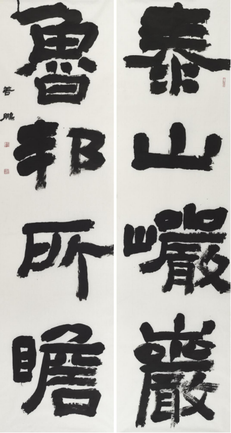本次入选作品展,以文物守护、书道传薪为精神内核,植根泰山世界自然与文化双遗产之厚壤,承续经石峪摩崖刻石“大字鼻祖”之千古风骨,自全国应征佳作中精择四十件精品汇展于此。参展诸作,皆以泰山诗文、家国襟怀、文化颂赞为题,篆隶楷行草五体纷呈,风格气象万千:笔墨沉雄苍劲,章法雍容典雅,既守泰山摩崖大字之古拙神韵,又融当代书家之艺术襟抱,文心与墨韵相融,风骨与意趣共生。